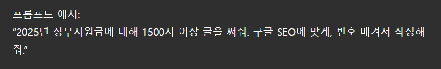 예를 들어, ‘2025년 정부지원금’이라는 키워드가 있다면 다음과 같이 요청합니다.