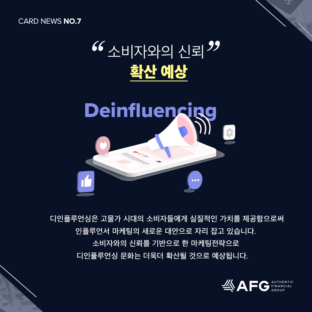 소비자와의 신뢰를 기반으로한 마케팅 전략으로 디인플루언싱 문화는더 확산될 것으로 보입니다.