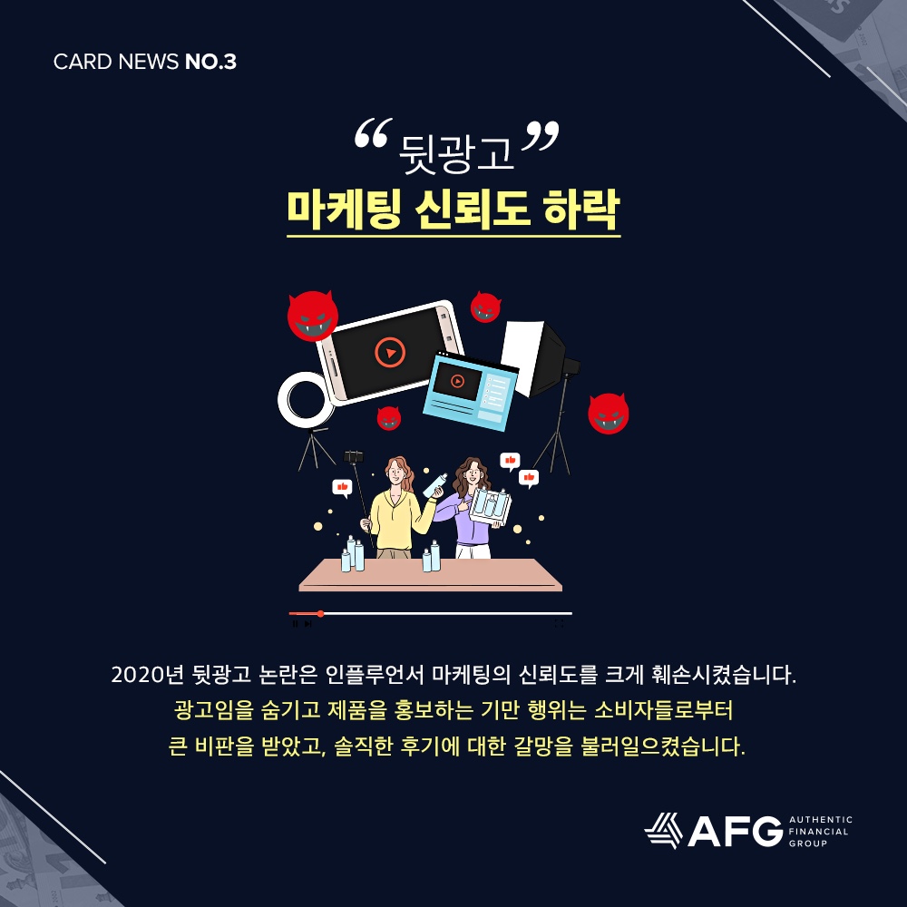 위에서 언급했듯이 광고성으로 게시하는글, 또한 자기가 사용하는 물품인척 광고가 아닌척 하는 '뒷광고' 논란도 디인플루언싱이라는 말이 나오고 있는 배경입니다.