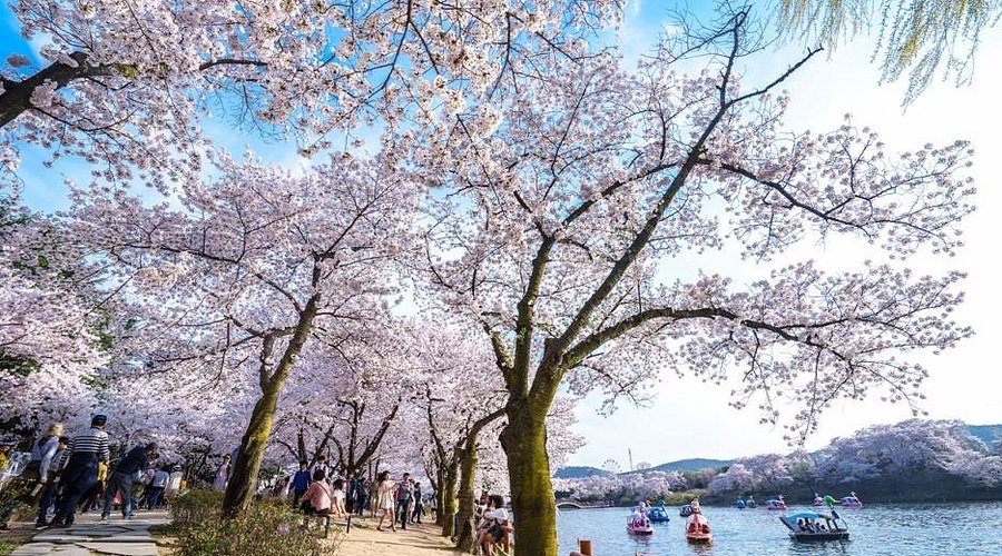 덕진공원은 벚꽃과 연못이 어우러져 풍경이 매우 아름답습니다.