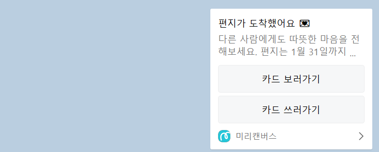 연말 카드 보내기 누르면 창이 하나 더 뜨면서
