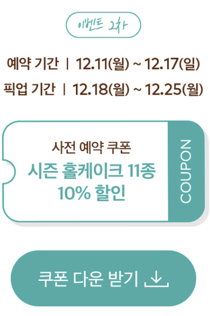 케이크 예약 : 11월 15일 금요일 ~ 12월 15일 일요일